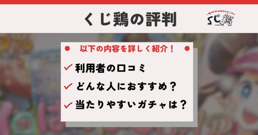 | 選ばれる理由 | 初回の総還元率100%超えガチャが人気 梱包が丁寧で発送が早い 価格帯が幅広く誰でも楽しめる |