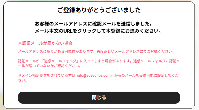 URLからのアクセスが正しく処理されると、会員登録は完了します。
