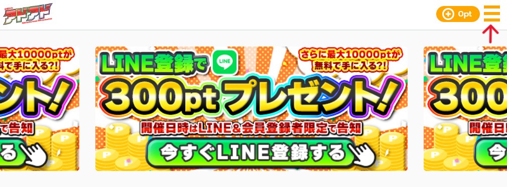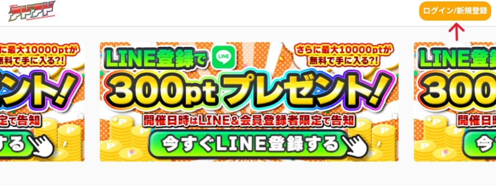 会員登録するだけ100ptがプレゼントされるため、クーポンコードと併せてお得さを感じた人は、アドアドオリパの登録を検討してみてください。