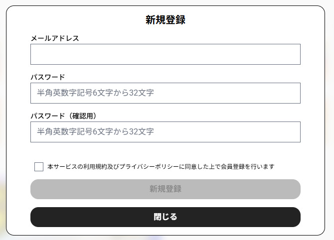 公式LINEで最初にもらえるクーポンコードは、会員登録した直後に入力する場合が多いため、新規会員登録から手順を確認していきましょう。