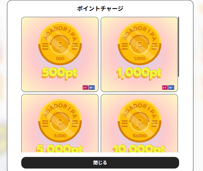 アドアドオリパでは支払いの完了後、購入したポイントが提供される仕組みです。