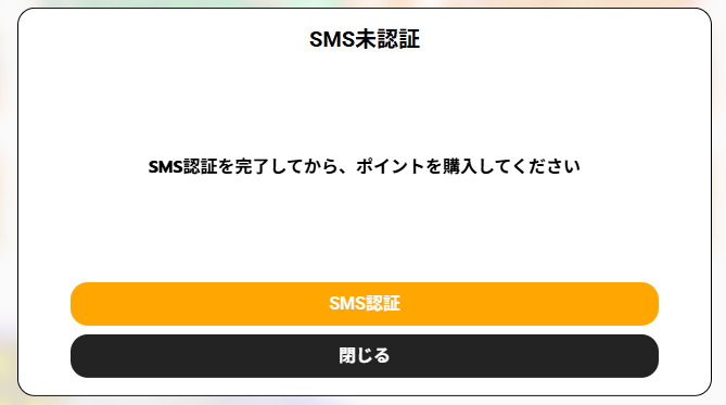 アドアドオリパではポイント購入のたびに、SMSによる決済本人確認を行うため、SMS認証は必ず行う必要があります。