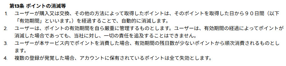 不正利用などの規約違反に該当した場合、アカウント制限がかけられて、ポイント購入を含めたサービスが利用できません。