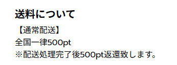 送料は全国一律で500pt必要だが配送処理完了後に返還される