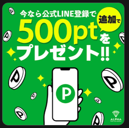 ALPHAオリパ公式LINEでは、友だち追加するだけで500ptがもらえるキャンペーンを行っています。