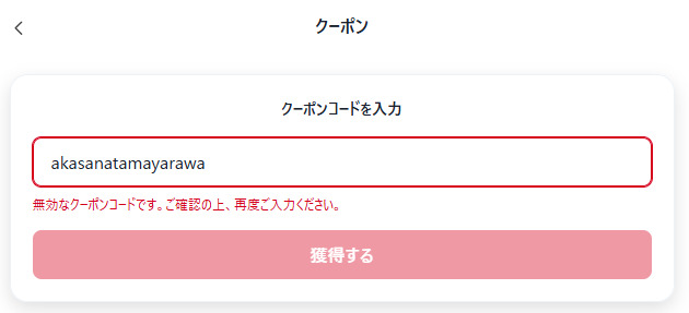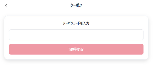 クーポンの入力画面が表示されるので、クーポンコードを入力して「獲得する」を選択すると、特典が付与されます。