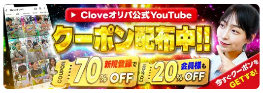CloveではCloveオリパ公式YouTubeで投稿されているショート動画の最後に、クーポンコードを掲載しています。