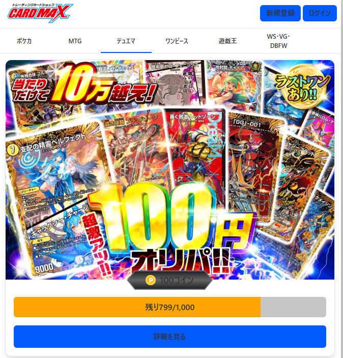 19円からデュエマオリパを遊べるので、オリパ初心者も気軽に試せます。