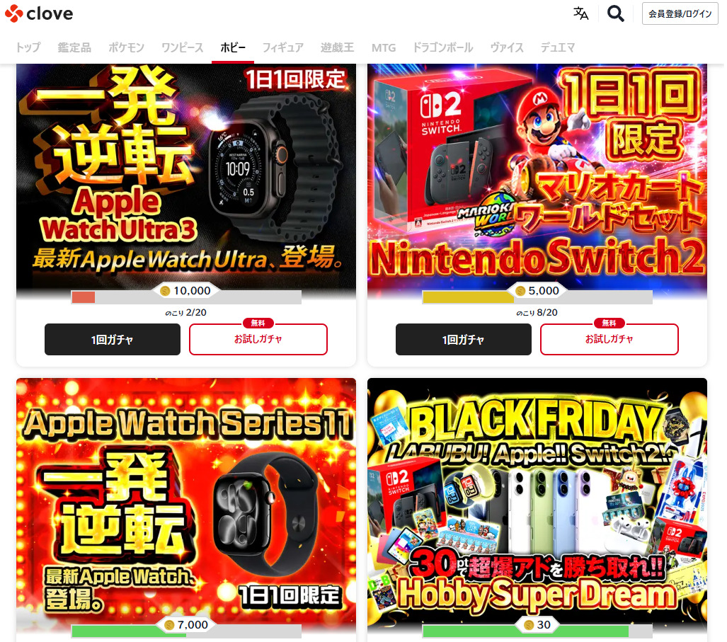 cloveオリパってのをYouTubeで見てて、Twitterで見かけたから登録して初めて買ってみた。