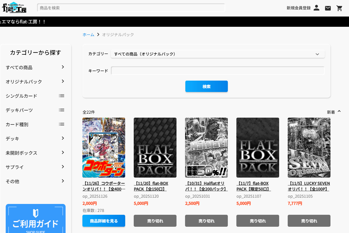 - オリパのほか、シングル、デッキ、パーツなども購入可能