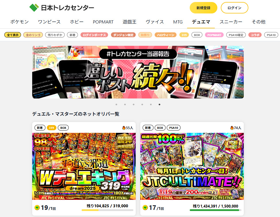 日本トレカセンターは、法人経営の超大手オリパサービスです。
