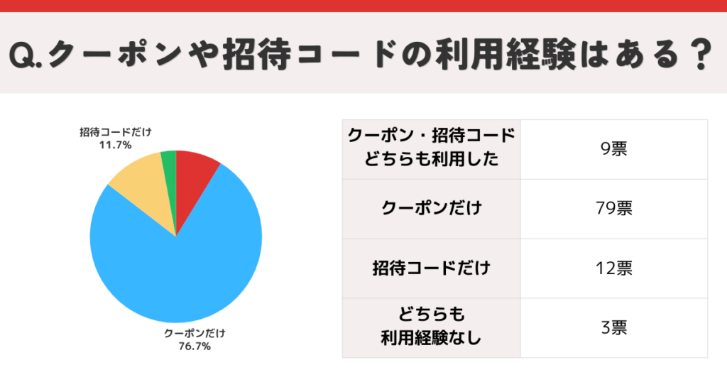 - クーポン・招待コードどちらも利用した:9票