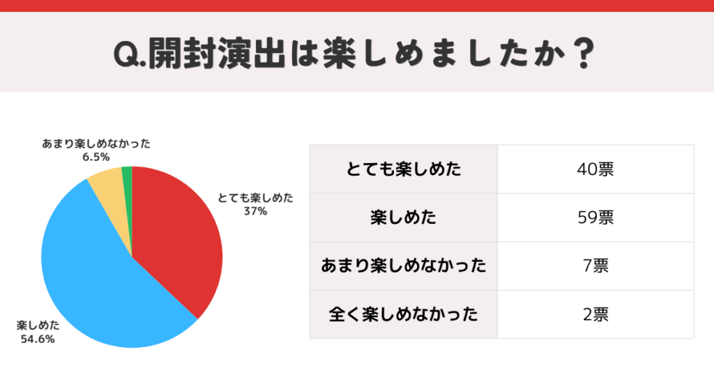 DOPAの開封演出についてアンケート調査を実施した結果、約92%のユーザーが「楽しめた」という結果となりました。
