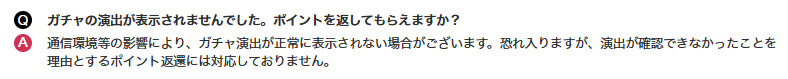 演出が表示されなくてもポイントは返還できない