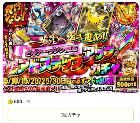 ただし、一番下のランクであるビギナーランクでは、常設のログインオリパが引けないため注意しましょう。