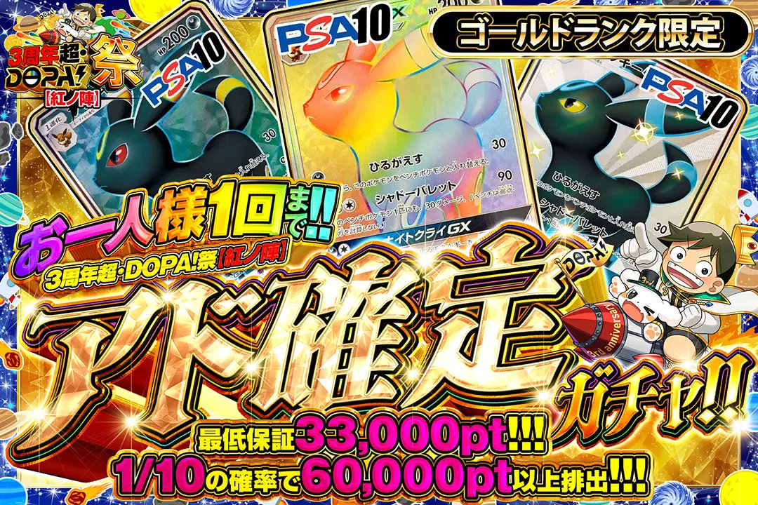 還元率の高さや最低保証の設定にも期待できるため、ランクアップを目指す点でもDOPA祭の限定オリパは積極的に引くと良いでしょう。