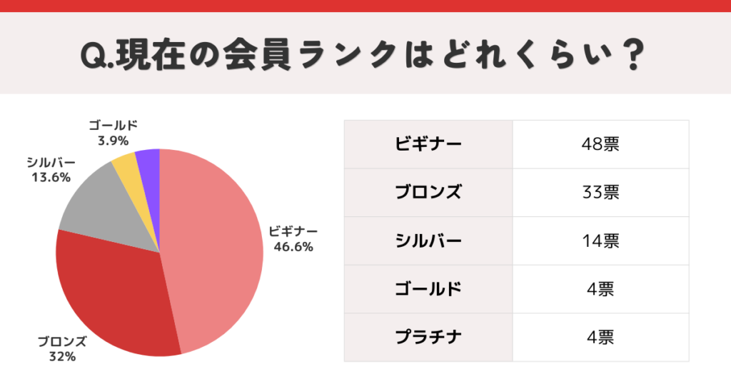 4割近くのユーザーがビギナー、続いてブロンズという結果になりました。