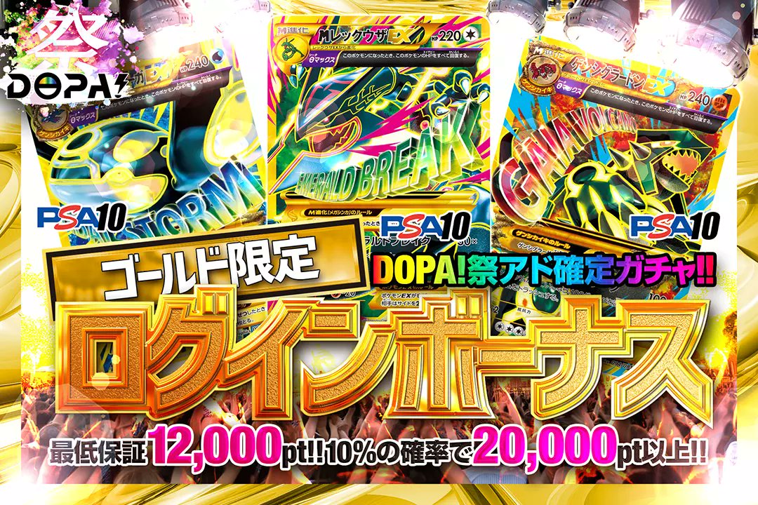 DOPAでは毎月24日にDOPA祭というイベントを開催しており、期間中は通常よりも豪華なオリパを開催しています。
