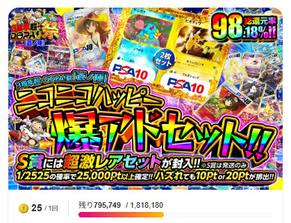 ポイントの損失をなるべく抑えたい場合は、価格に対して最低保証が高めに設定されたオリパを引いていきましょう。