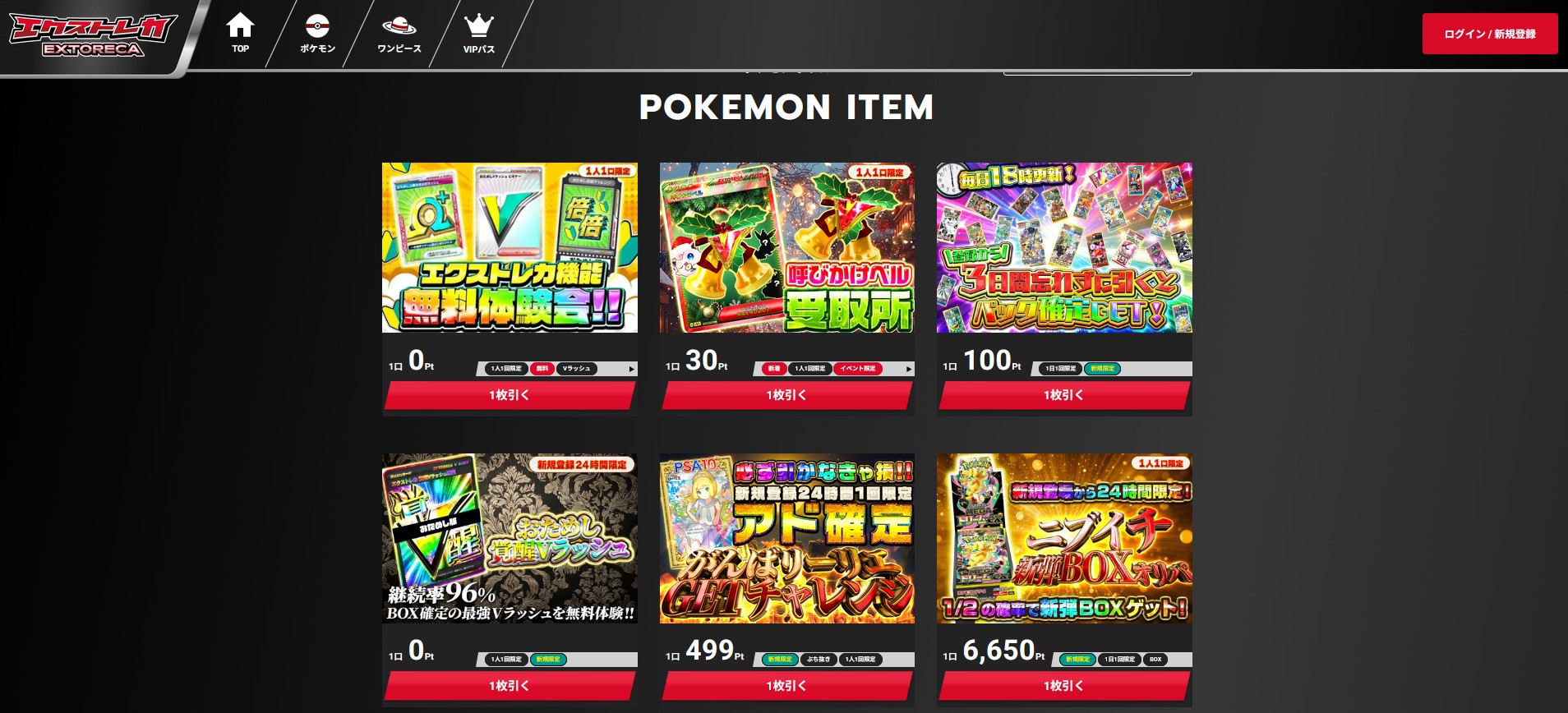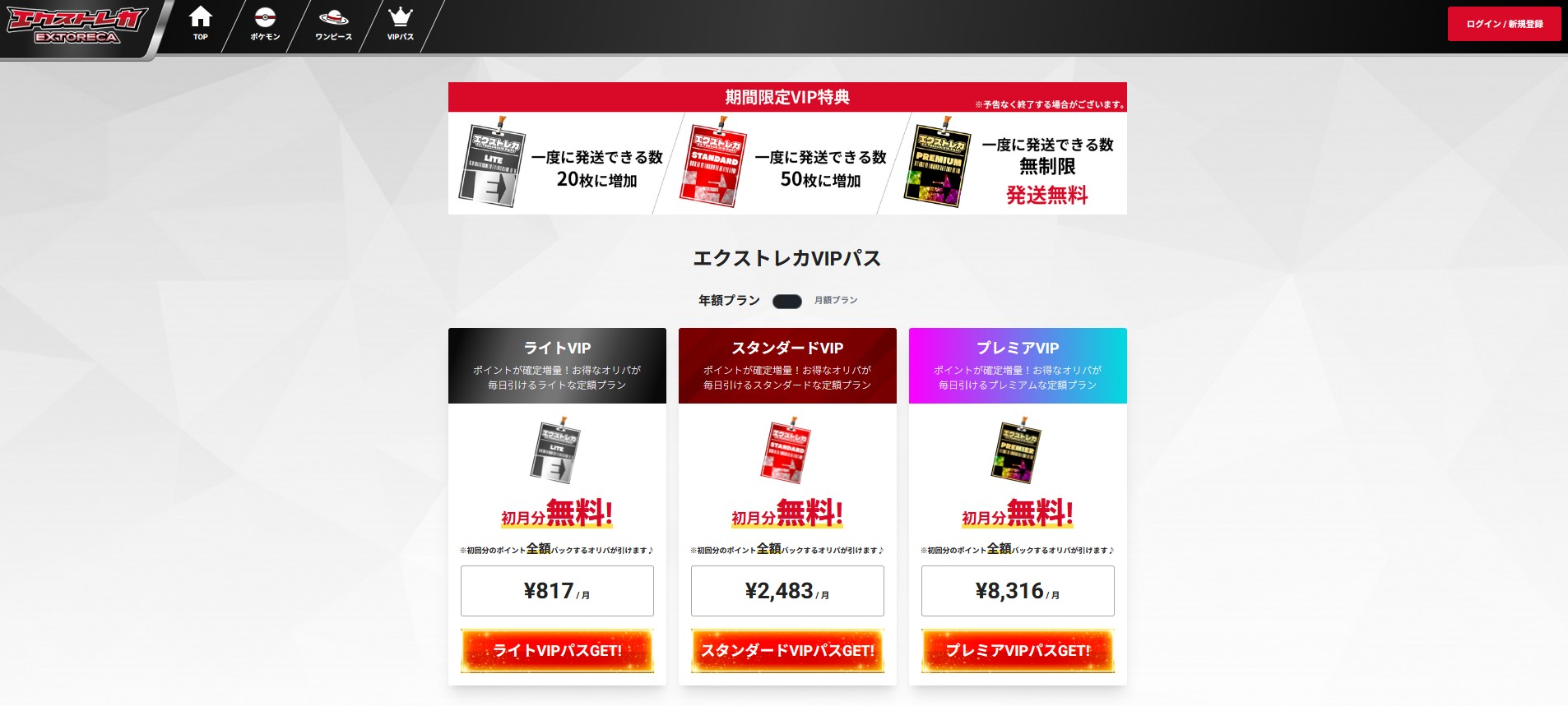 エクストレカでVIPパスを利用している方は、毎月1回オリパを無料で引くことができます。