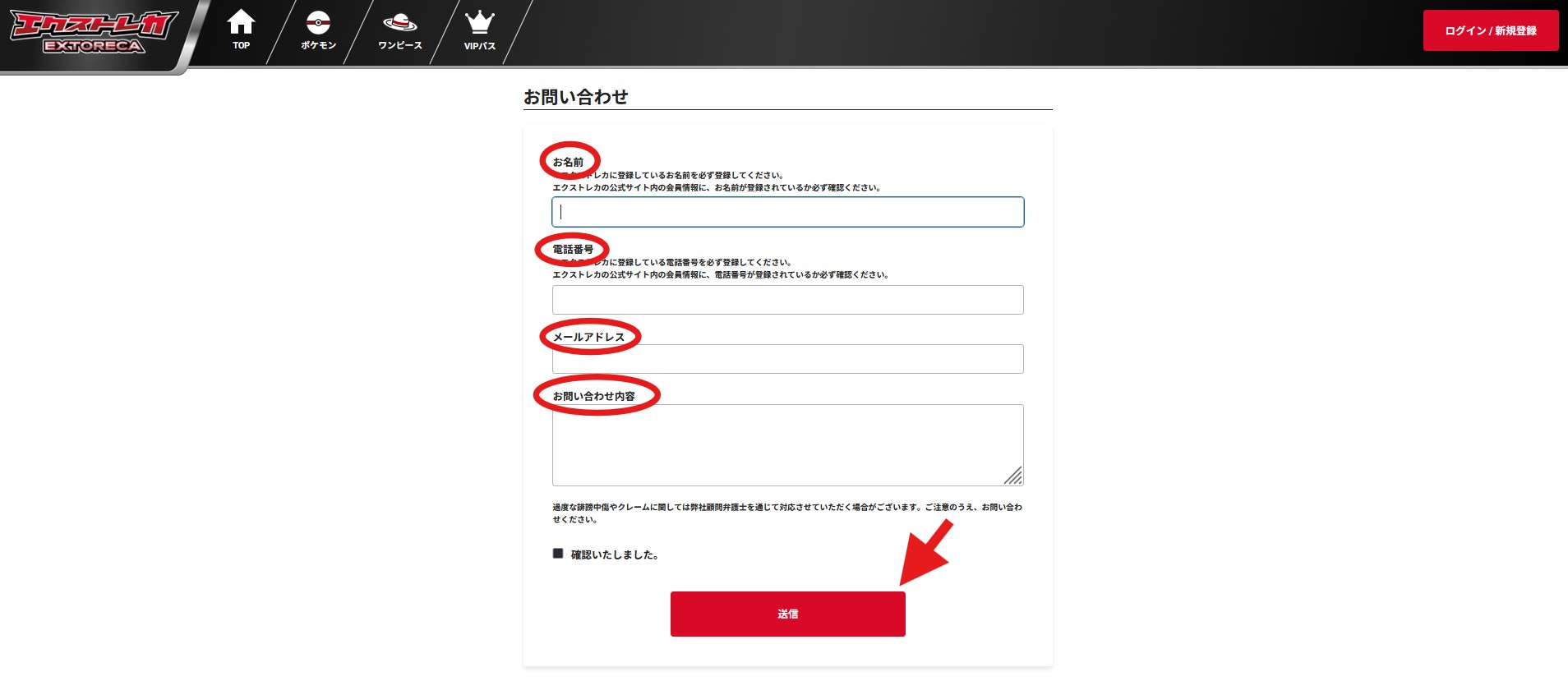 画面遷移後に下へスクロールしていくと、問い合わせ内容を記載する項目が出てきます。