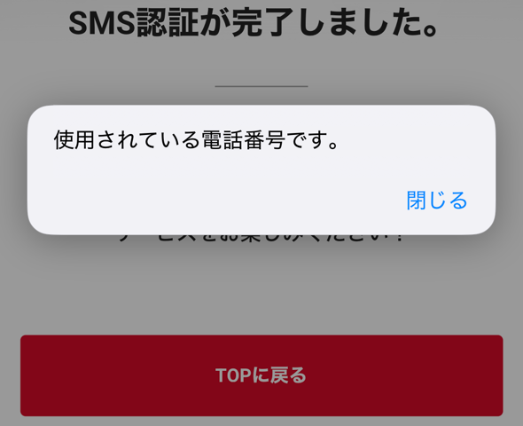 認証コードを入力する際にミスがあると、SMS認証が行えません。
