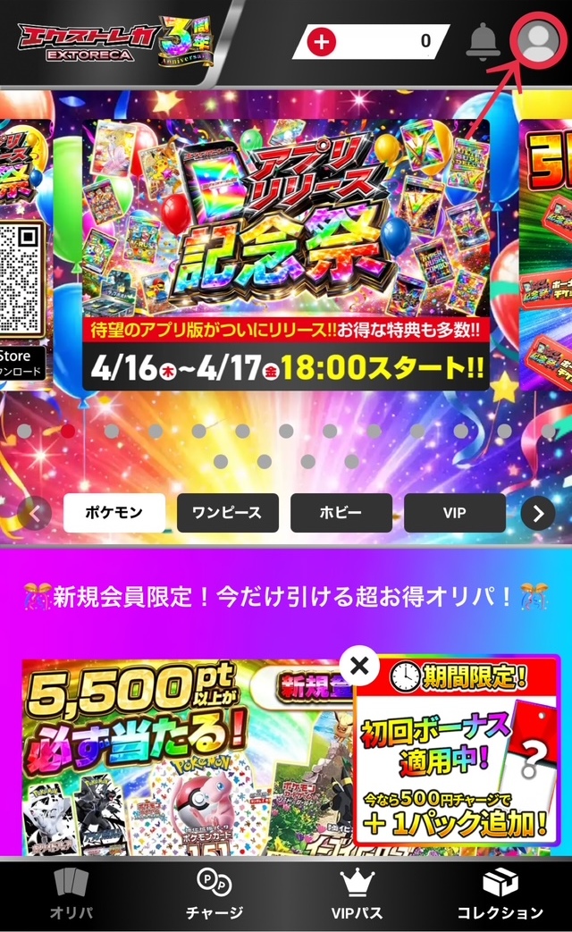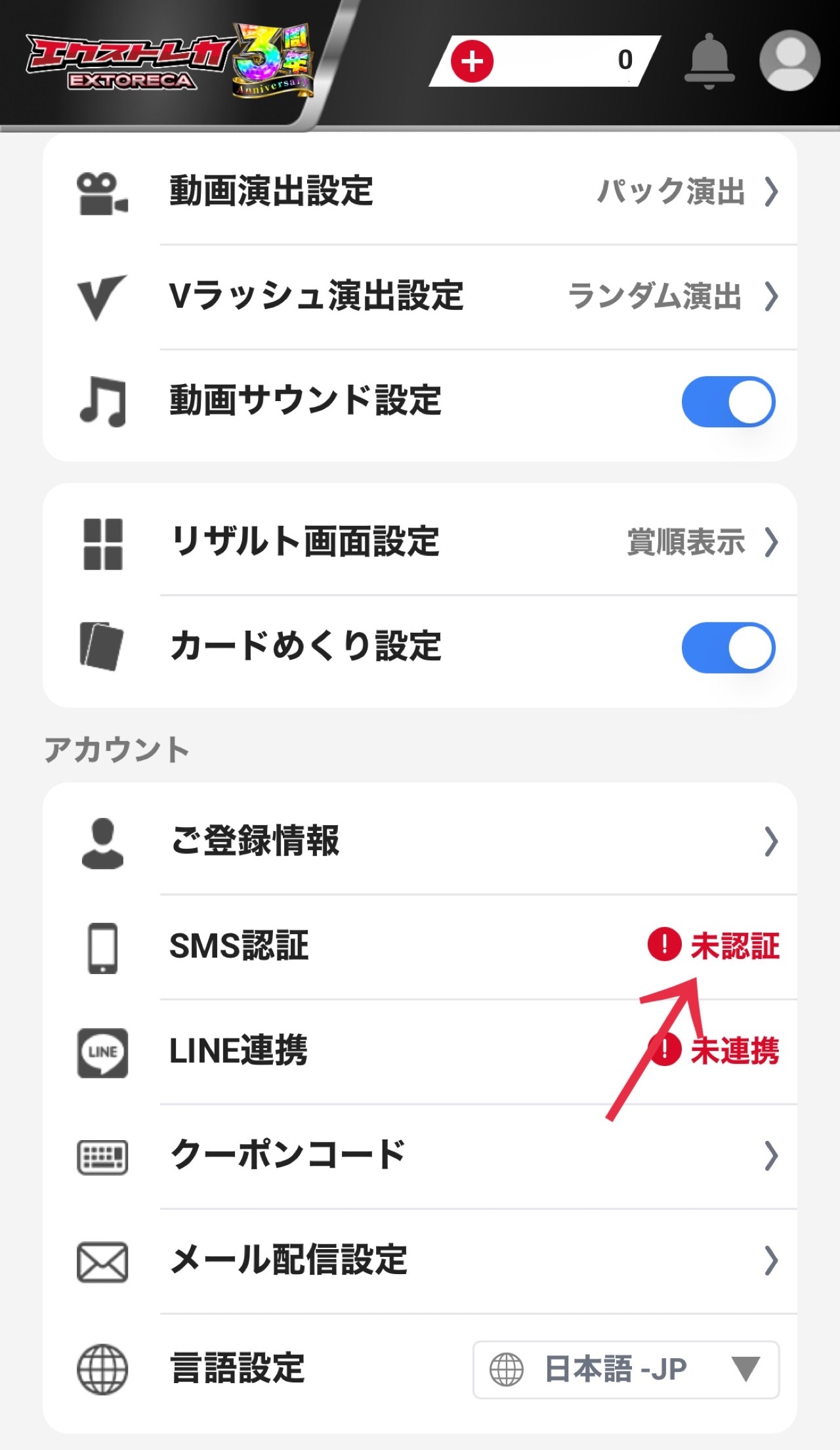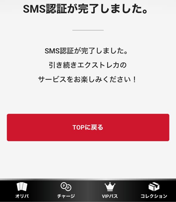 エクストレカはSMS認証をしないと、オリパを引けないので必ずSMS認証をしてくださいね。