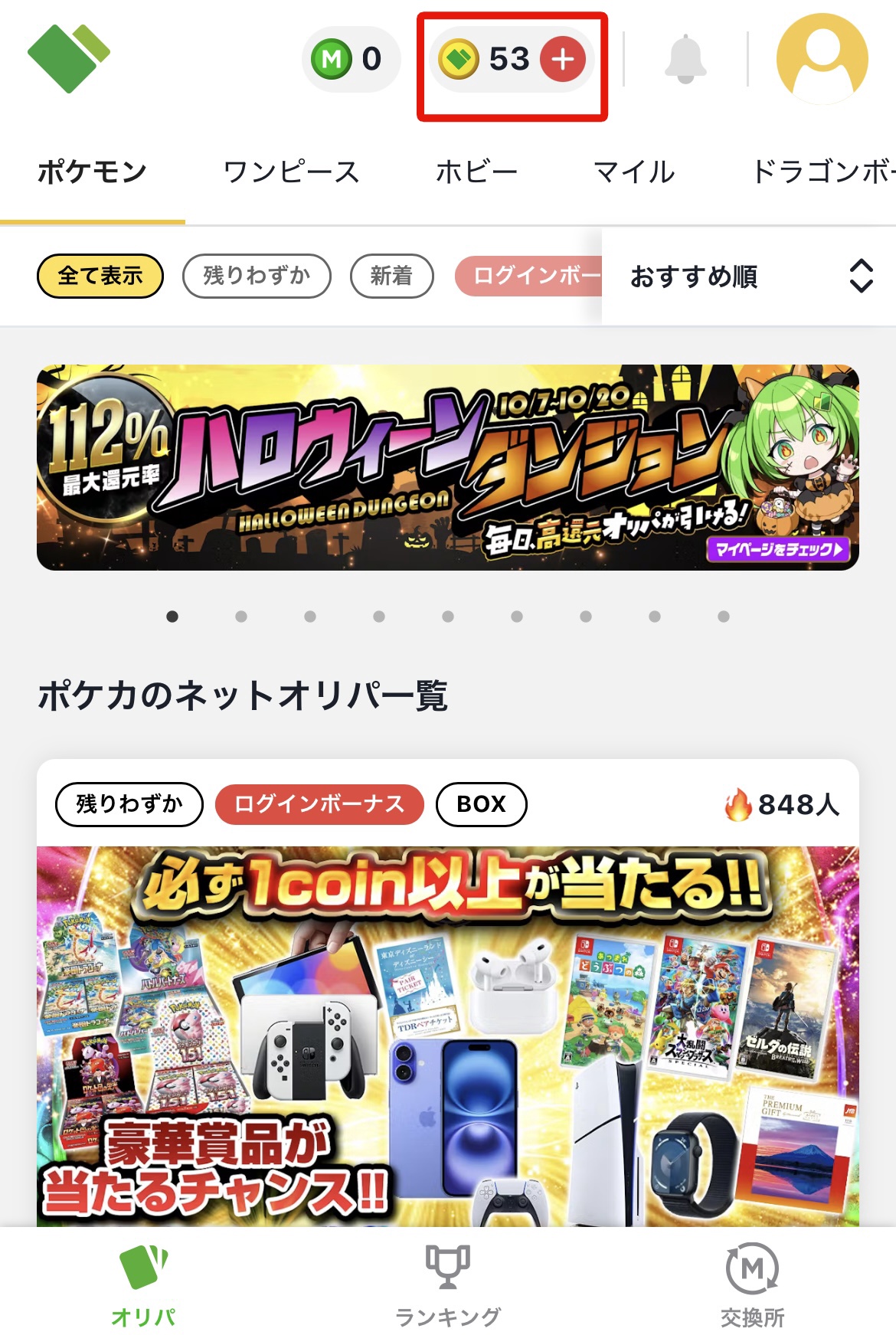 引きたいオリパがある場合は、早めにcoinを準備しましょう。