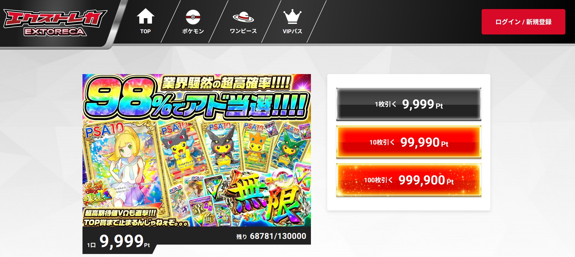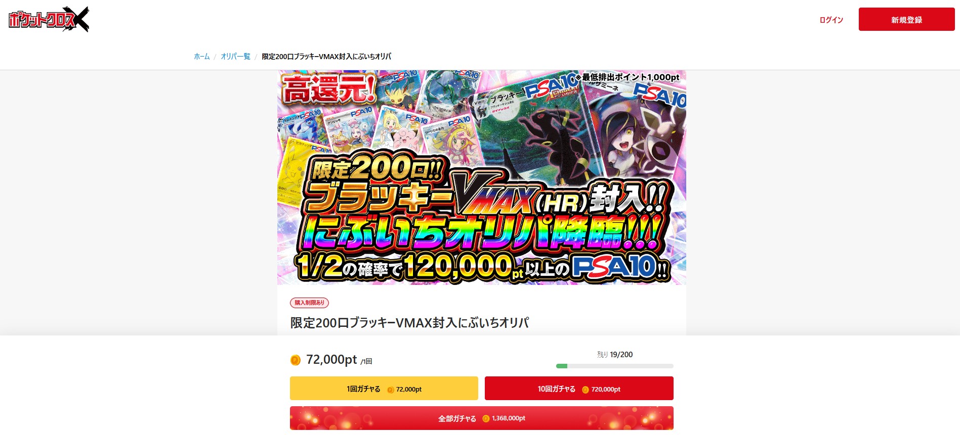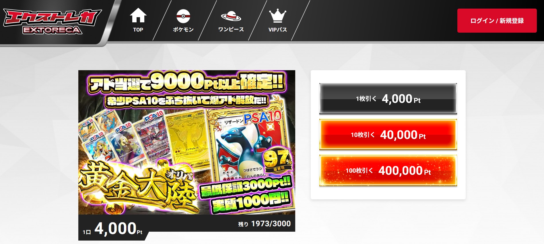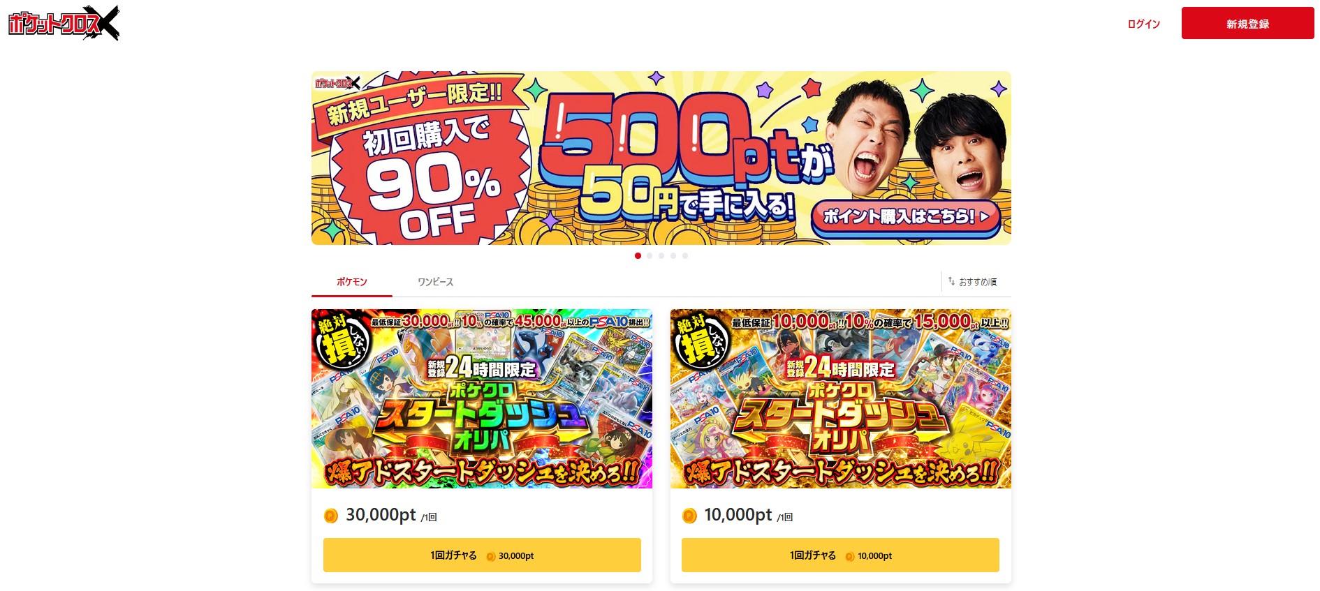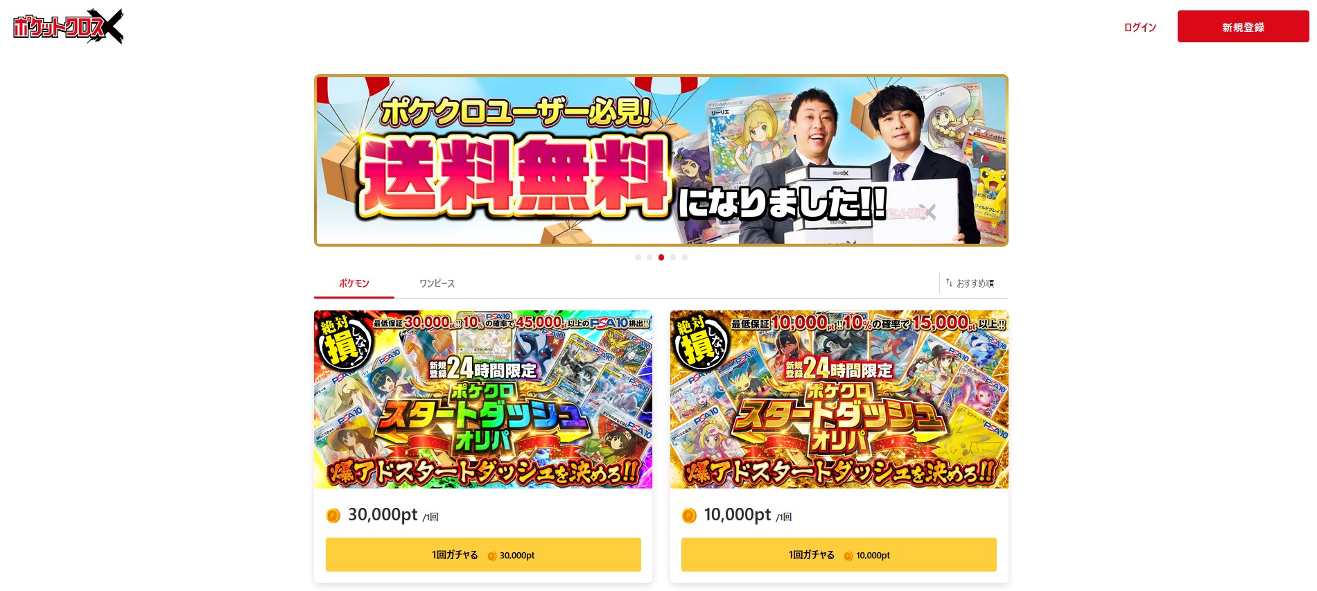 また、新規会員限定で引けるPSA10確定ガチャは、PSA10が必ずゲットできる大チャンスです。