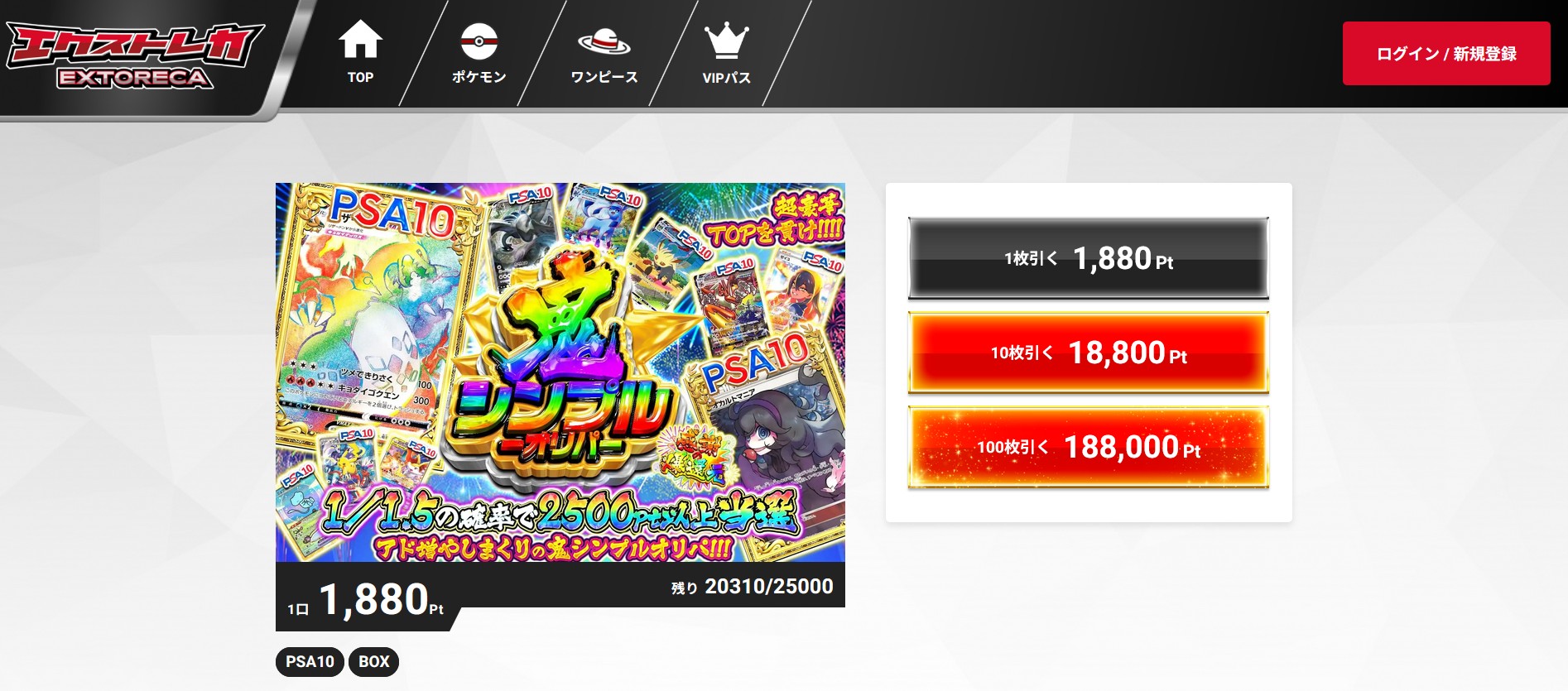 エクストレカは、オンラインオリパだけではなく秋葉原に実店舗も構えており、とても信頼性の高いオリパサイトです。