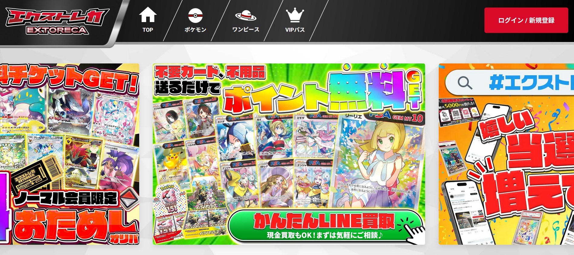 ![]() 日本トレカセンター | ![]() エクストレカ | ![]() ポケットクロス | |