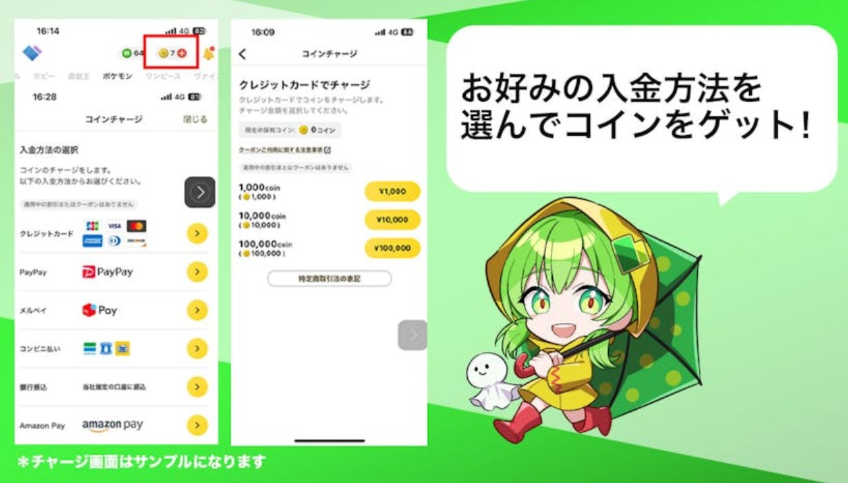 取り扱いカードはポケモンとワンピースのみとなっております。