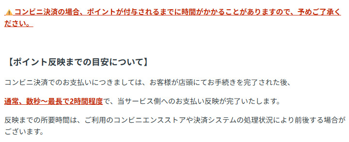 24時間支払いができる一方で、状況によってはポイントやコインの反映に時間がかかる点も注意が必要です。