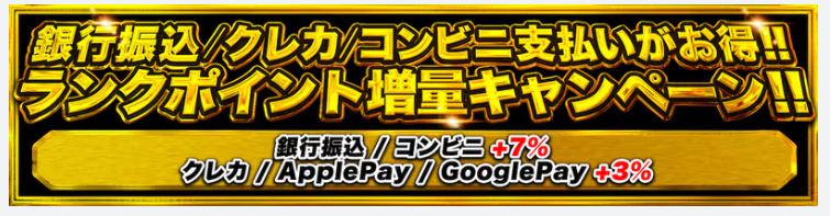 たとえば、オリパワンでコンビニ払いした場合、会員ランクの上昇に必要なランクポイントが7%増量されます。