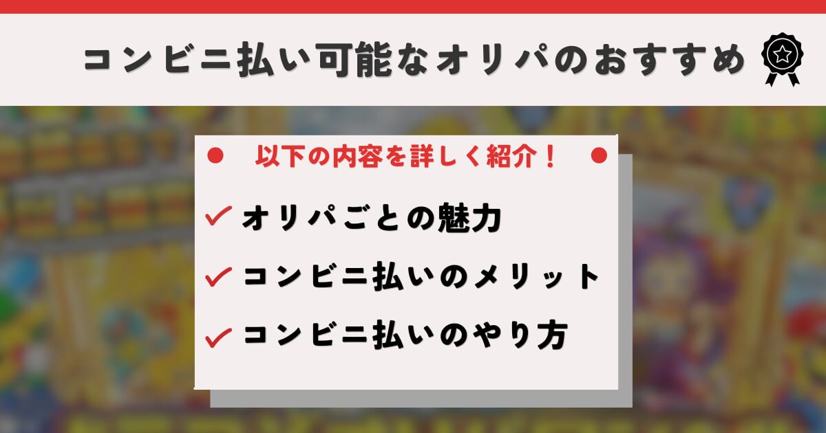 コンビニ払い可能なオリパのおすすめ【2026年最新】