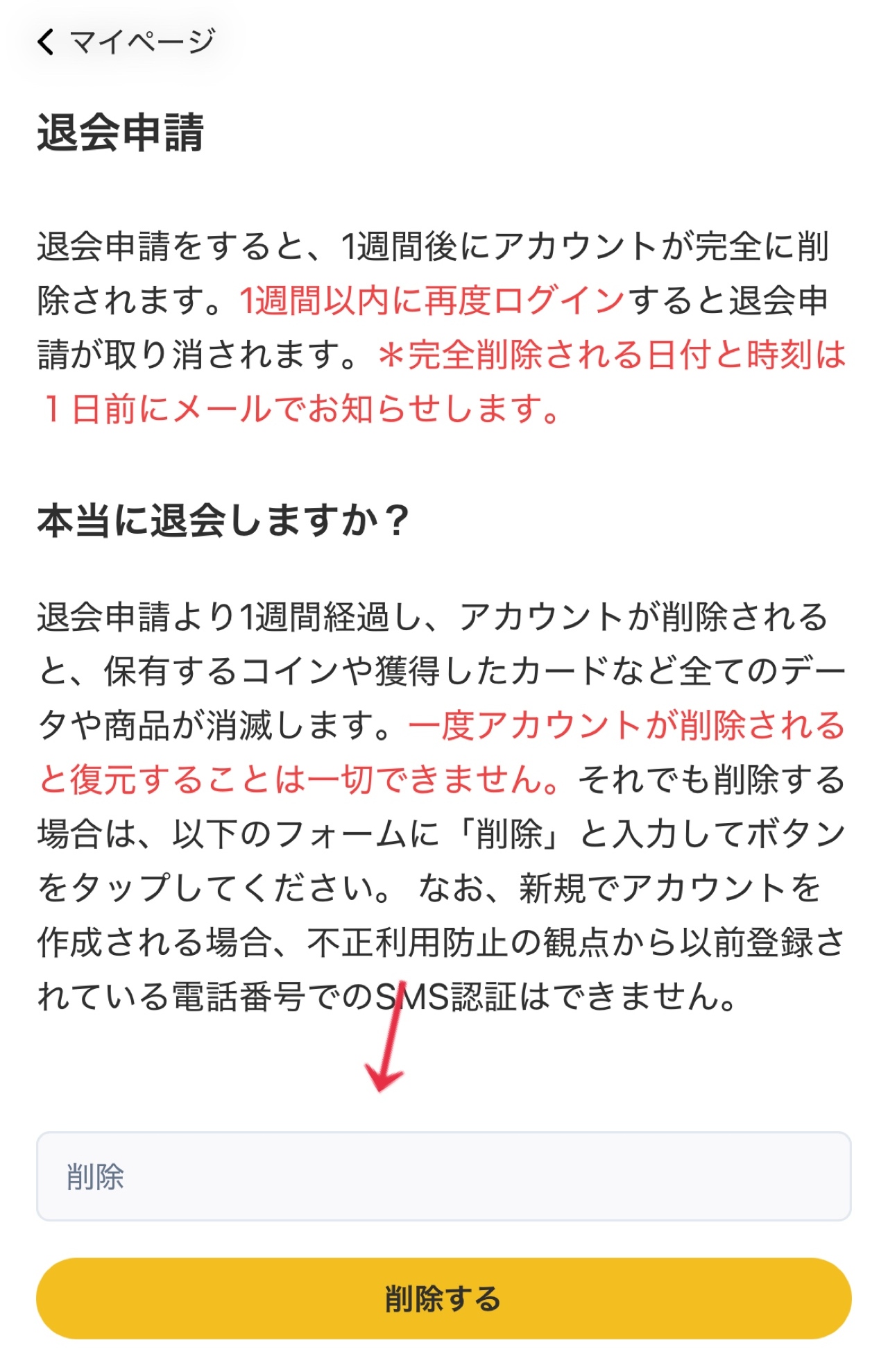 アカウントの消去を防ぎたいときは、退会申請後にログインをしてください。