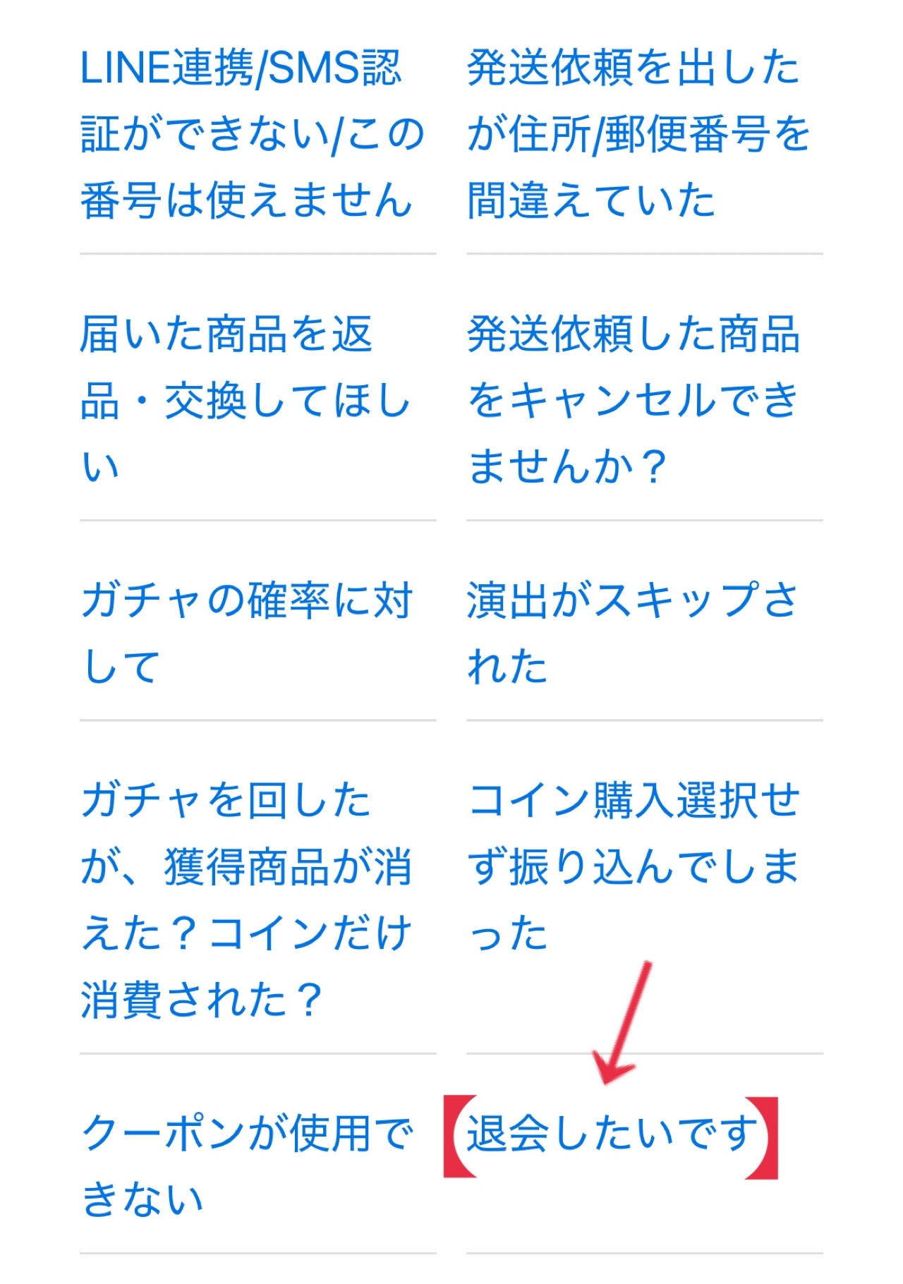 よくある質問の「退会したいです」をクリックしましょう。