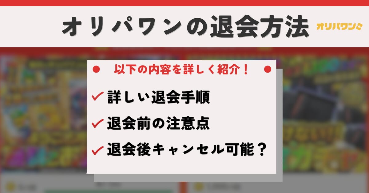 本記事では、オリパワンの退会方法オリパワンで退会前の注意点をご紹介します。
