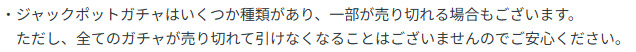 ジャックポットガチャは、毎月の全体のチケット所持数を把握して設計されるため、基本的には完売しません。