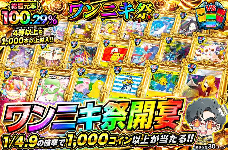 オリパワンでは、毎月29日に還元率100%超えで当たり枠が豪華な「ワンニキの日」が開催されます。