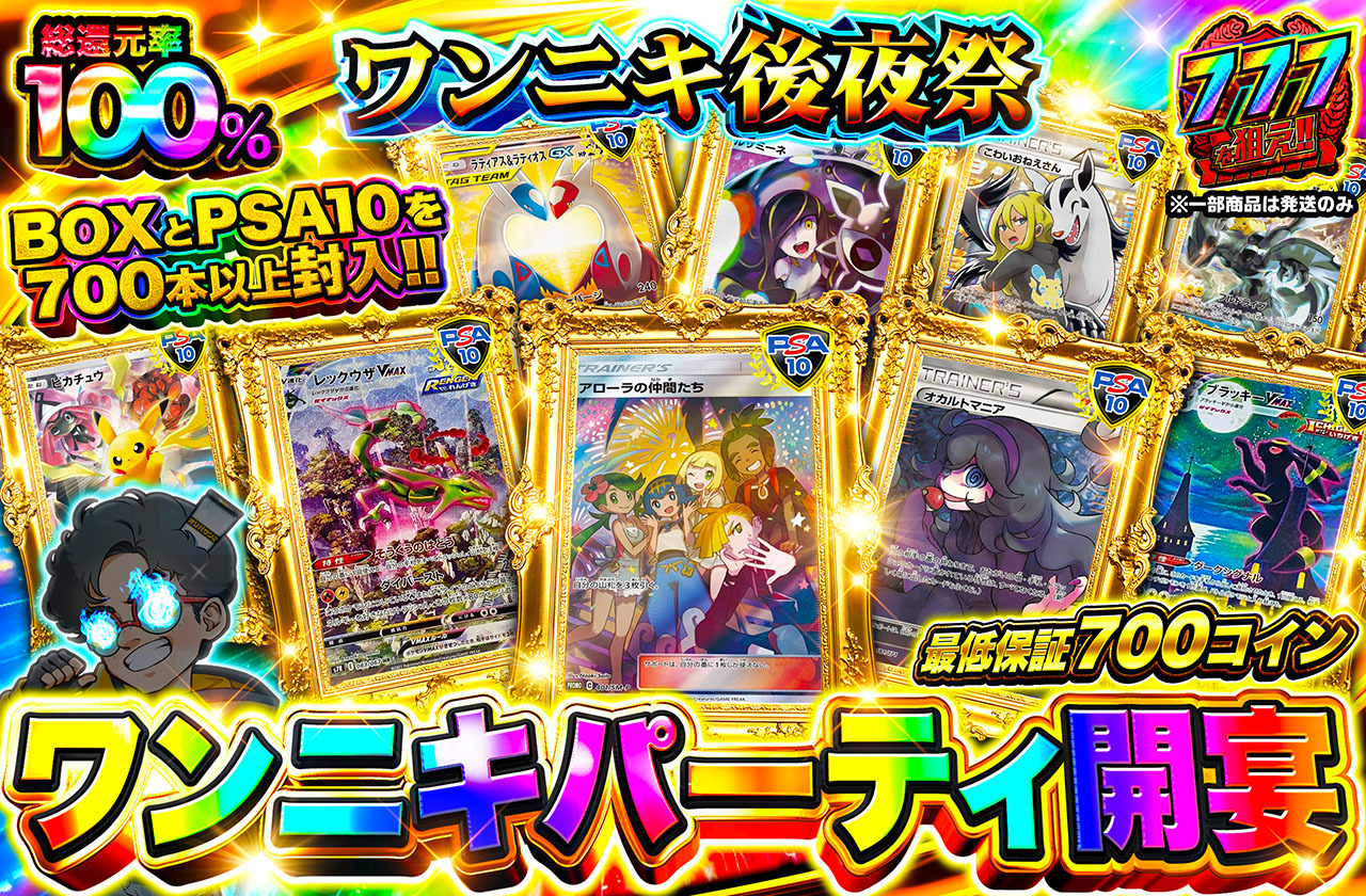 後夜祭でも、PSA10が当たる還元率100%以上の豪華なオリパが販売されるため、見逃せません。