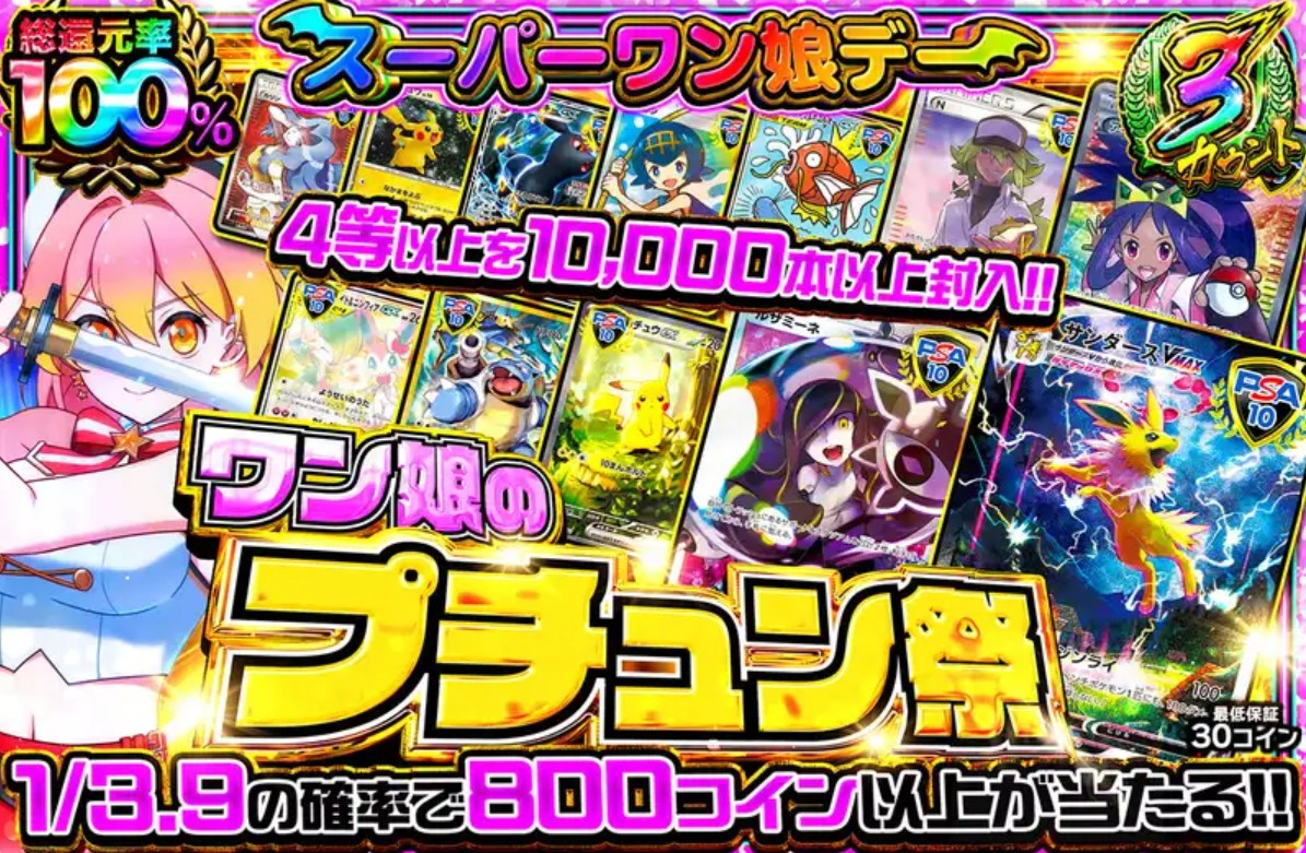 その他、超還元祭やスーパーワン娘デーなど、お得にオリパを楽しめるイベントが多いのがオリパワンの魅力です。