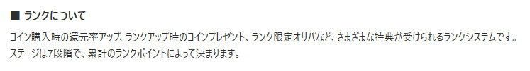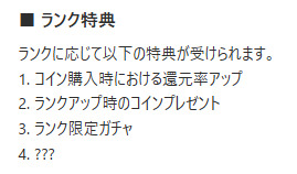 - ランクごとの設定でコイン購入時の還元率がアップする
