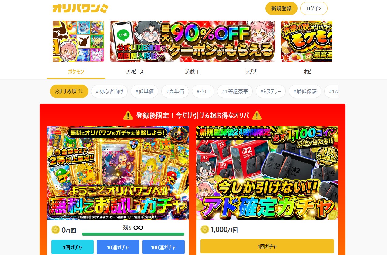 オリパワンは、高還元率のオリパが多く、初心者から上級者まで多くの方が楽しめるオンラインオリパサイトとして知られています。