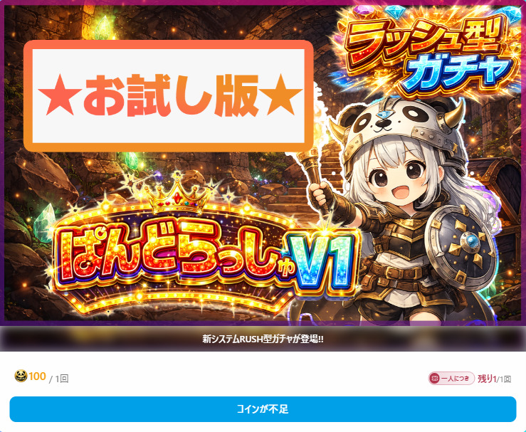 パンドラオリパには、1回分のコインで景品を大量にGETできるループオリパとラッシュオリパがあります。