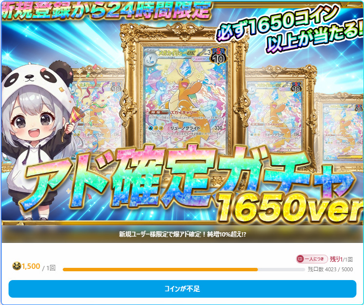 アド確定ガチャ1,650ver1,500coin1,650coinメガカイリューex(PSA10)