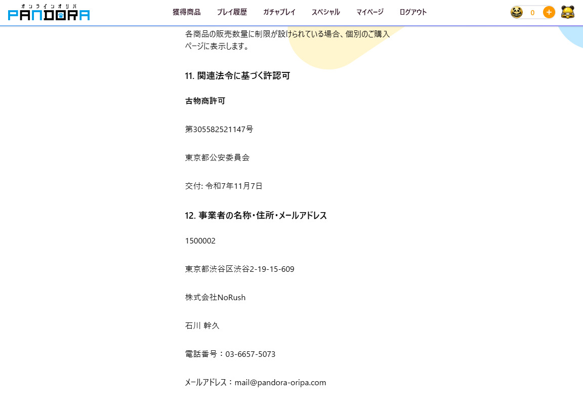 パンドラオリパの運営元の会社名、住所、連絡先の記載があり、身元が公表されているため安心です。