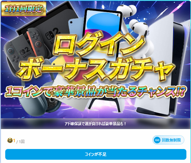 もらえるコインが豊富