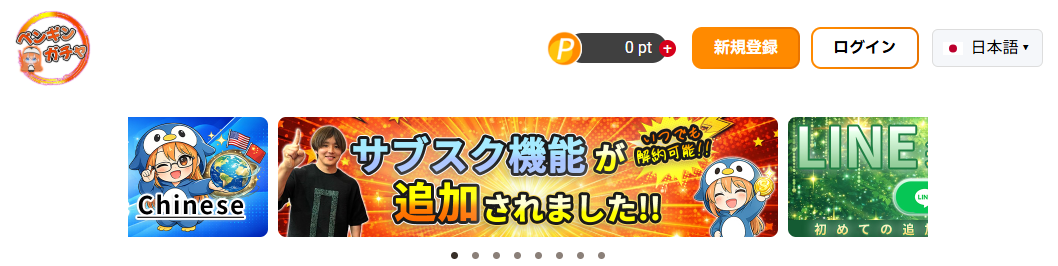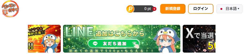 ペンギンガチャのクーポンコードが欲しい人は、ペンギンガチャ公式サイト上部のバナーをチェックしましょう。