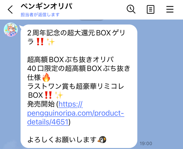 LINEの友だち登録をしておけば、クーポンコードのほか最新のオリパ情報も受け取れます。